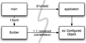 Separation of Main One way to separate construction from use is simply to move all aspects of construction to main, or modules called by main, and to design the rest of the system assuming that all objects have been constructed and wired up appropriately. (See Figure 11-1.)