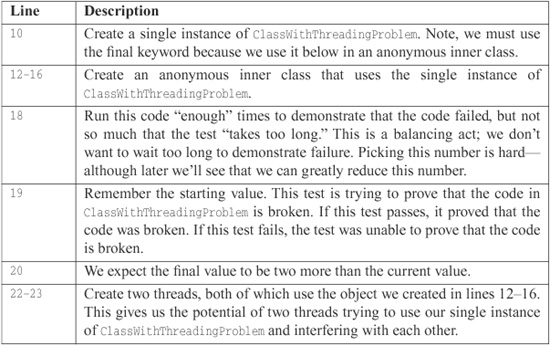In this chapter we talked about concurrent update, and the disciplines of clean synchronization and locking that can prevent it. We talked about how threads can enhance the throughput of an I/O-bound system and showed the clean techniques for achieving such improvements. We talked about deadlock and the disciplines for preventing it in a clean way. Finally, we talked about strategies for exposing concurrent problems by instrumenting your code.
