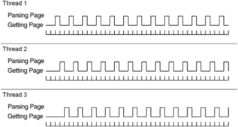Adding Threading Assume for the moment that the performance test fails. How can we improve the throughput so that the performance test passes? If the process method of the server is I/O bound, then here is one way to make the server use threads (just change the processMessage):